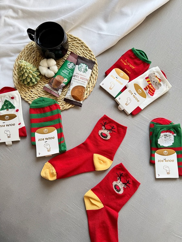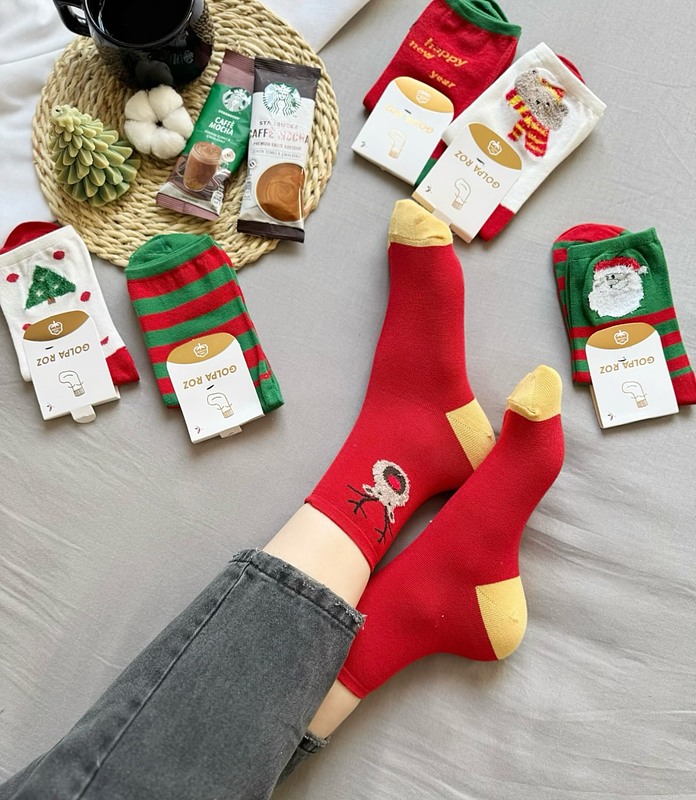 جوراب‌های فانتزی کریسمسی با طرح‌هایی مثل درخت کریسمس، گوزن شمالی، بابانوئل و دانه‌های برف، حس و حال جشن‌های زمستانی را به‌خوبی منتقل می‌کنند.